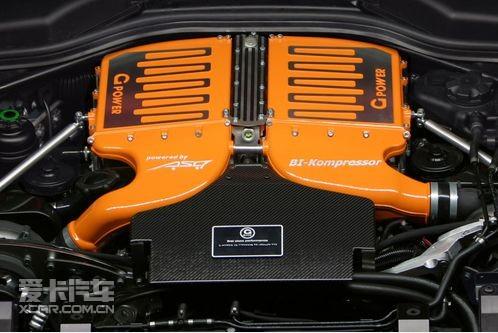 G-POWER將E60系列M5的V10發(fā)動機植入了造型優(yōu)雅的X6M上,同時,強化了活塞及連桿,并將排氣量由5.0升擴充到5.5升,還增加了2個ASA T1-316機械增壓器,使該車在6800轉(zhuǎn)/分時,能夠爆發(fā)出900馬力,8000轉(zhuǎn)/分時,能夠達到870N.m的最大扭矩。但為了保證此車的動力輸出,G-POWER不得不將寶馬的6速自動變速器更換為6速手動變速器,而X-DRIVE四驅(qū)系統(tǒng)也不得不變?yōu)楹筝嗱?qū)動。