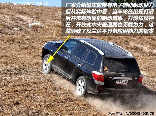 漢蘭達的3.5升車型都為四驅(qū),從而也不會上演“爬坡門”的尷尬,但無論是從定位、軸距、輪胎還是懸掛結(jié)構(gòu)來講,它都不適合在野地里行駛,而且廠家宣稱的電子輔助制動的效果也不明顯,從而使車輛的脫困能力非常有限。