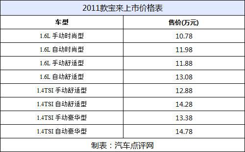 2011款寶來最主要的特點是增加了1.4TSI車型,并成為目前大眾汽車旗下最便宜的帶有TSI和DSG系統(tǒng)的車型,并且曾經(jīng)一直在用的新寶來這個名字也被“正名”為寶來。