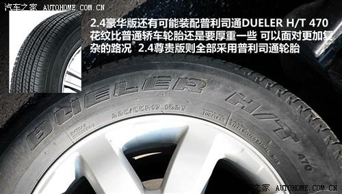 據(jù)本田廠家工作人員介紹,CR-V的2.4升豪華版會(huì)根據(jù)車輛生產(chǎn)的批次不同搭載不同的輪胎,除了上面介紹的鄧祿普GRANDTREK ST30系列之外,還可能裝配普利司通DUELER H/T 470輪胎,這款輪胎也是一款結(jié)合了公路和野外行駛能力的混合型輪胎,而在導(dǎo)航版車型上則全部使用的該產(chǎn)品。據(jù)了解,米其林輪胎已經(jīng)在2010款車型上停止使用了。