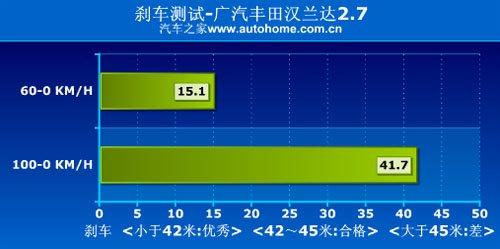 在我們的實際測試中,漢蘭達的剎車成績表現(xiàn)還是不錯的,除了自身的剎車系統(tǒng)比較優(yōu)秀外,四條245mm寬度的輪胎的作用也功不可沒。