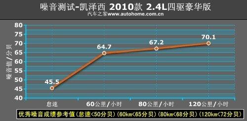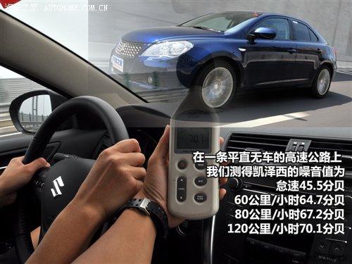 在一條平直無車的高速公路上,我們測得凱澤西的噪音值為:怠速45.5分貝;60公里/小時64.7分貝;80公里/小時67.2分貝;120公里/小時70.1分貝。這樣的水平在同級別中算是比較安靜的,完全不輸于那些以舒適性見長的車型。