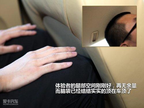 A3的軸距不小,但是與實際的表現(xiàn)有些出入,身高1.82米的體驗者調(diào)整好前排座椅后,坐在后排腿部空間剛好夠用,前排座椅的造型完全可以經(jīng)過設計后騰出更大的地方。更不幸的是我們的體驗者腦袋已經(jīng)頂住車頂了,可以說是漂亮的C柱下滑的流線犧牲了第二排的高度。