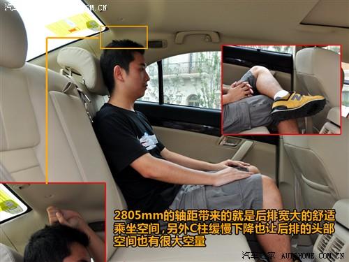 得益于2805的軸距,這款車讓后排乘客可以擁有相對(duì)充足的腿部空間,翹起二郎腿還是沒(méi)問(wèn)題的,不過(guò)稍微費(fèi)點(diǎn)勁!另外,后排的地板比較平,因此如果后排中間坐人的話,腳不會(huì)太別扭!