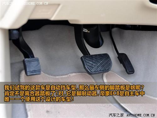 另外,在這款車上我還見到自主品牌中少有的腳制動(dòng)剎車,這樣的設(shè)計(jì)多見于合資品牌,而自主品牌中帝豪EC8可能是首家采用這樣設(shè)計(jì)的。