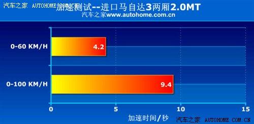 我們來看一下2.0L手動(dòng)擋馬自達(dá)3的實(shí)際性能表現(xiàn);0-100KM/h的加速時(shí)間為9.4秒,6擋手動(dòng)變速箱換擋順暢且擋位間隙很小,操作時(shí)手感很棒;不過9.4s的成績似乎沒有我們想象的出色,與?怂、世嘉等同排量車型相當(dāng)。在緊急制動(dòng)的測試中,前懸掛面對(duì)較強(qiáng)的慣性表現(xiàn)不錯(cuò),重心轉(zhuǎn)移帶來的前傾現(xiàn)象不是很明顯,41.6米的剎車成績比較出色,5次下來距離差別不大。