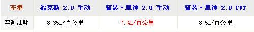 在剎車系統(tǒng)的表現(xiàn)上福克斯扳回一城,在百公里制動(dòng)測試中,福克斯的平均剎車距離在42.1米左右,并有多次42米以內(nèi)的變現(xiàn),而翼神的平均剎車距離為43.2米,基本比?怂归L出1米。油耗的表現(xiàn)還是日系的翼神更好,同為2.0升發(fā)動(dòng)機(jī)搭配手動(dòng)擋,翼神的百公里油耗比?怂沟1升左右。