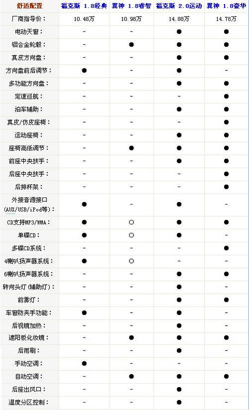 在入門(mén)車型的舒適性配置方面,兩車都表現(xiàn)的不盡如人意。?怂菇(jīng)典版的鋼輪轂讓人郁悶,座椅高低調(diào)節(jié)和遮陽(yáng)板化妝鏡也都是非常必要的配置。相比起來(lái)翼神的主要缺憾是沒(méi)有外接音源接口,這不得不說(shuō)是一個(gè)配置上的缺陷。