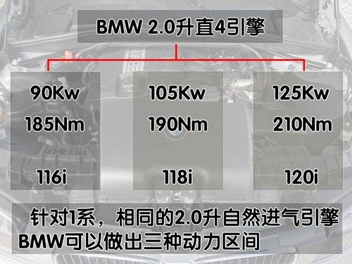 其實BMW針對相同引擎進(jìn)行功率扭矩的不同調(diào)教也是有先例的,目前國內(nèi)銷售的318i和320i就屬于相同引擎排量的不同動力調(diào)教,巧合的是這兩款3系所使用的也是1系120i的這款4缸自然進(jìn)氣引擎。從價位上來說3系的318i和320i之間的定價差距在15%--20%左右,那么未來BMW若引進(jìn)1系的116i車款,其官方定價同樣會比現(xiàn)在的120i更低。根據(jù)BMW 針對318i和320i的定價差異,116i與120i的定價差距大致會在10%--15%之間,也就是25萬元左右。