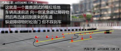 進(jìn)入避讓區(qū)域前車輛要在直道上盡可能的加速,當(dāng)然這么短的一段距離最多也只能提速到65km/h左右,緊接著車輛前方出現(xiàn)“麋鹿”,松開油門,不踩剎車,向左邊快速轉(zhuǎn)向。這時輪胎會瞬間突破極限,ESP系統(tǒng)的轉(zhuǎn)向傳感器和車身橫向位移傳感器將數(shù)據(jù)傳送給數(shù)據(jù)中心,系統(tǒng)將判定出車輛轉(zhuǎn)向不足,并對左后輪(如果是向右轉(zhuǎn)則是對右后輪)實施單獨制動,讓車頭向左偏移,形成足夠的轉(zhuǎn)向角度,避開障礙物。