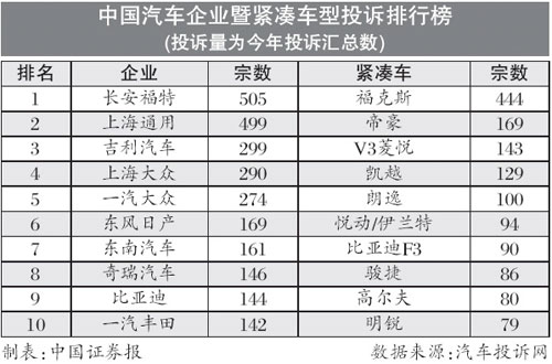 汽車投訴網(wǎng)本期投訴榜上榜企業(yè)與上周相比再次出現(xiàn)變動(dòng),比亞迪、一汽豐田分別以144宗和142宗取代東風(fēng)雪鐵龍、長城汽車進(jìn)入前十大名單。而長安福特更是以16宗的增量一舉超越上海通用,首次成為企業(yè)投訴榜“冠軍”。