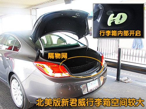 北美版新君威的行李箱門為電磁式開啟,行李箱面積很大,足以滿足人們的日常使用。當(dāng)后排座椅放倒后,行李箱容積則大大提升。備胎和車載工具位于行李箱底部。