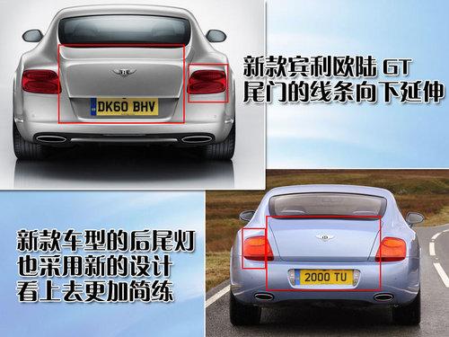 2012款賓利歐陸GT的尾部設計也比老款有很大改進,尾門突出的線條一直延伸到底部保險杠的位置,而且尾部保險杠采用平行線條設計,與老款斜式線條設計有很大區(qū)別。另外,2012款賓利歐陸GT的后尾燈造型更加純粹,突出這款車簡約的設計風格。