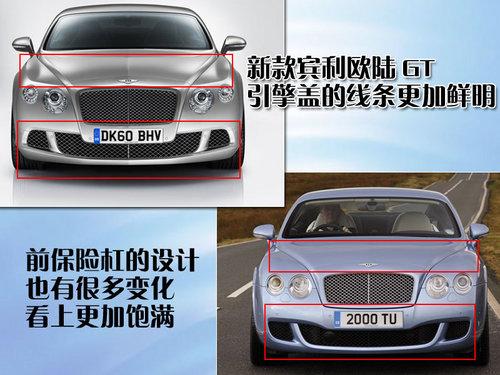 2012款賓利歐陸GT與老款車型相比,外形的整體風格并沒有太大的變化,但這款新車在很多細節(jié)方面都進行了改進,看上去比老款車型更加動感時尚。從車頭的照片可以看的出來,2012款賓利歐陸GT的引擎蓋采用了更多的線條勾勒,而且前保險杠的造型也有細微的變化,看上去更加飽滿。