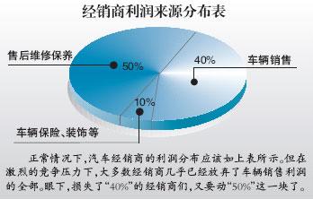 “維修價(jià)格和保養(yǎng)價(jià)格是消費(fèi)者非常看重的,經(jīng)銷商如果開始對零配件打折,這對用戶而言極具吸引力,但損失只能是經(jīng)銷商自己承擔(dān),而給消費(fèi)者帶來的實(shí)惠不比車價(jià)下降幾千元少。”一位售后服務(wù)專家透露,過去經(jīng)銷商維修保養(yǎng)利潤尚能維持生存,因此還敢拼賣車價(jià)格,但是如果工時(shí)費(fèi)與零配件價(jià)格低于6折時(shí),經(jīng)銷商將無利潤可言。