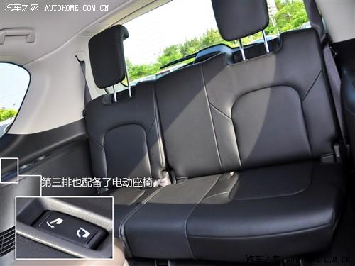 2011款英菲尼迪QX56的車身尺寸十分夸張,車長(zhǎng)5290mm寬2030mm高1935mm,軸距達(dá)到3075mm,所以空間和舒適性絕對(duì)不是問(wèn)題。即使是第二排乘客也擁有極高的乘坐感受,獨(dú)立空調(diào)、座椅通風(fēng)、中央扶手箱都是后排獨(dú)享的配置。