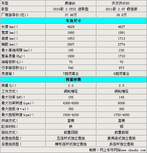 渦輪增壓已經(jīng)逐漸成為一種主流的引擎形式,憑借更強(qiáng)勁的爆發(fā)力和更低的油耗,增壓車型開(kāi)始不斷普及。很多廠家也開(kāi)始在旗下SUV車型上搭載增壓發(fā)動(dòng)機(jī),同樣的排量下,可以為體型較大、車身較重的SUV帶來(lái)更充沛的動(dòng)力輸出。今天我們就為大家挑選出兩款豪華SUV,它們分別為剛剛上市的沃爾沃XC602.0T舒適版和一汽大眾奧迪Q52.0TSI進(jìn)取型。之所以把它們放在一起進(jìn)行比較,主要取決于售價(jià)比較相近。