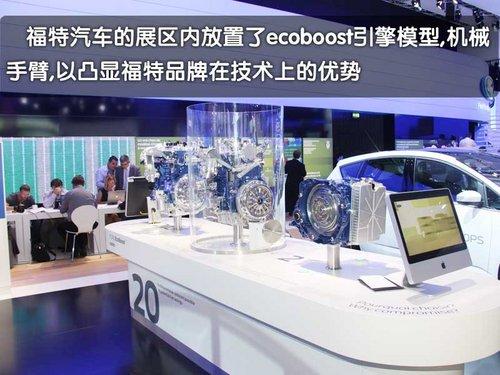 福特汽車在這次巴黎車展現(xiàn)場從面積上來說還是不小的,但是在展區(qū)內(nèi)的設計以及各個展示區(qū)域的布局上與國內(nèi)近兩次大型國際車展的布局和功能沒有區(qū)別。由于福特正在積極宣傳他們的ECOboost增壓加直噴引擎,所以福特展區(qū)內(nèi)引擎占據(jù)了重要的位置。