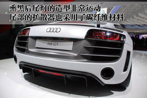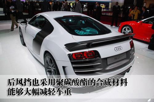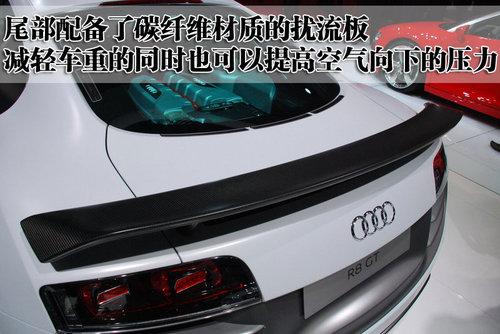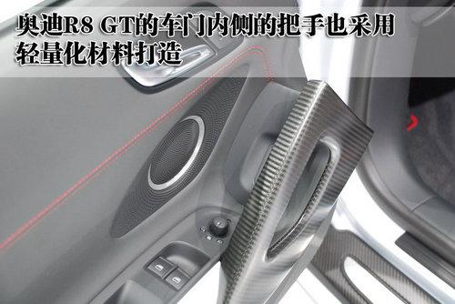 奧迪R8 GT的后風(fēng)擋也采用聚碳酸酯的合成材料打造,有助于車身的重量減輕。而且這款車的尾部配備了碳纖維材質(zhì)的擾流板,在減輕車重的同時也可以提高空氣向下的壓力,達(dá)到高速、穩(wěn)定的效果。
