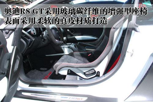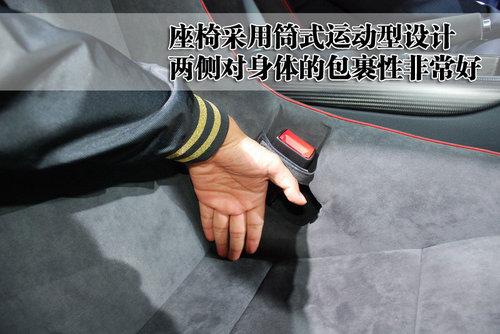 奧迪R8 GT采用玻璃碳纖維材質的增強型座椅,在減輕車重的同時也更加堅固。而且座椅表面采用柔軟的真皮材質縫制,質地非常柔軟舒適。座椅的真皮面料采用紅線手工縫制,就連安全帶都是采用激情的紅色設計。奧迪R8 GT的座椅采用筒式運動型設計,座椅兩側對身體的包裹性非常好。