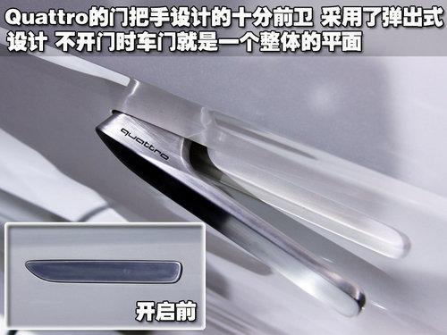奧迪Quattro概念車的車門把手設(shè)計(jì)是全車另一大亮點(diǎn),在沒有使用的情況下,它會(huì)隱藏在車門內(nèi)部,讓整個(gè)車門看起來是一個(gè)整體,沒有一點(diǎn)突出。當(dāng)需要開門的時(shí)候,只需按一下靠前的位置,車門把手會(huì)彈出,上車之后把手會(huì)自己閉合到起始位置。