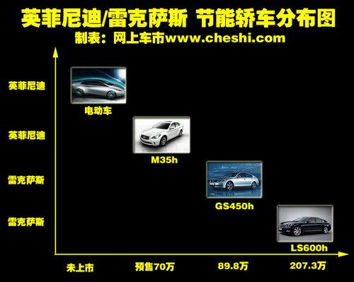 英菲尼迪與雷克薩斯雖然同屬日系豪華品牌,但雷克薩斯一直致力于油電混合動力車型的設計和研發(fā),而且較早將混合動力車型引入國內(nèi),旗下的RX450h、GS460h和LS600hl等車型均得到了國內(nèi)消費者的認可。不過雷克薩斯混合分別為SUV和D級豪華轎車,較高的售價(廠商指導價為94.1萬——207.3萬之間)則讓不少消費者望而怯步。而英菲尼迪即將引入的兩款新車級別相對較低,這種合理的市場定位不僅降低了消費者購車的門檻。
