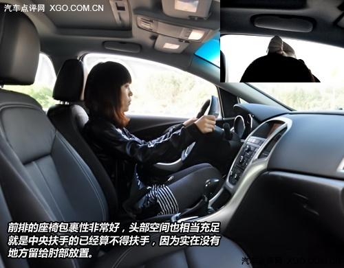 英朗的軸距已經(jīng)達(dá)到2685mm,所以空間上沒有讓我們失望。真皮座椅的舒適度肯定是毋庸置疑的,不僅包裹性和支撐性都非常的不錯(cuò),頭部空間也相當(dāng)充足,雖然圖中體驗(yàn)者身高只有165cm,但是從頭部剩余量上看,對(duì)與180cm的人來說也不會(huì)有太多的壓迫感。而后排空間更是讓人意外,腿部?jī)扇,頭部一拳半的距離對(duì)于這種小車來說已經(jīng)是很奢侈了。