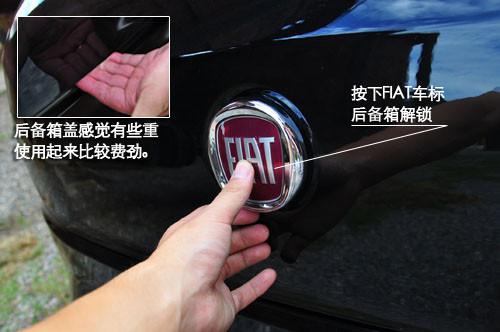 后備箱開(kāi)啟采用了電磁感應(yīng)按鈕,稍用力按壓FIAT標(biāo)志即可開(kāi)啟一個(gè)角度,設(shè)計(jì)頗為精巧。后備箱的容積并不算大,擱下一個(gè)旅行背包已經(jīng)占據(jù)了1/3的體積,后排座椅支持4比6放到,雖然不能完全放平,但是也為后備箱提供了更多空間?傊,博悅的后備箱應(yīng)付日常使用是完全沒(méi)有問(wèn)題的。只是后備箱蓋感覺(jué)有些重使用起來(lái)稍稍有些費(fèi)勁。