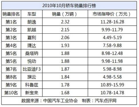 畢竟總體還是增長的,更讓人欣喜的是,自主品牌在銷量排行前十名中占了三個席位;朗逸霸主的地位依舊穩(wěn)固,凱越、捷達(dá)、桑塔納則維持著“新三樣”的銷售成績,夏利突破兩萬輛躋身前三還是第一次,有些讓人出乎意料。