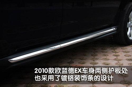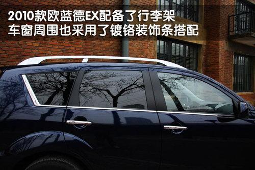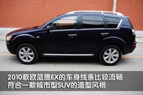 三菱2010款歐藍德EX的車身線條比較流暢,比較符合一款城市型SUV的造型風格。歐藍德EX 3.0L車型除了配備行李架以外,車窗下后沿都采用了鍍鉻裝飾條搭配。另外,這款新車的車門把手和車身兩側護板處,都采用了鍍鉻裝飾,看上去非常時尚。