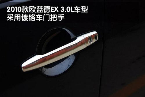 三菱2010款歐藍德EX 3.0L車型的前大燈采用鷹眼式設計,并且?guī)в兴阶詣诱{節(jié)功能和側向輔助照明功能。與歐藍德EX其他排量不同的是,3.0L車型的前霧燈和前臉周圍都帶有鍍鉻裝飾,這一點與EVO X非常相似。另外,歐藍德EX 3.0L的前保險杠底部配備了護板。