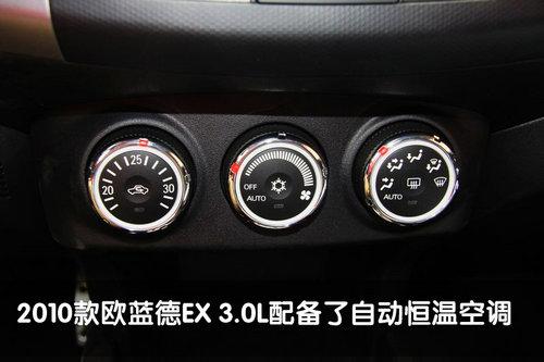 歐藍德EX 3.0L的三輻式方向盤配備了音響系統(tǒng)控制按鍵,而定速巡航和換擋撥片則是標準配置,提高高速行駛的舒適性和運動氣質。另外,歐藍德EX采用的全自動空調(diào)系統(tǒng),旋鈕式的設計相當大氣,操作也十分的方便,鍍銀的外觀設計與中控臺完美契合。無論是嚴寒冬季還是炎炎夏日,有了它都能從容面對。