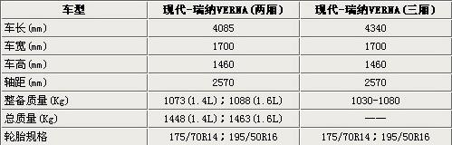 現(xiàn)代瑞納VERNA與i20同平臺生產(chǎn),兩廂車型在前臉設(shè)計上與三廂不會有太大的不同,車身尺寸上除了長度外,其他與三廂車型基本相同,三廂版瑞納,寬為1700mm,高為1460mm,軸距為2570mm,車身比雅紳特要大了不少。關(guān)于兩廂版瑞納的詳細(xì)信息請參見下表: