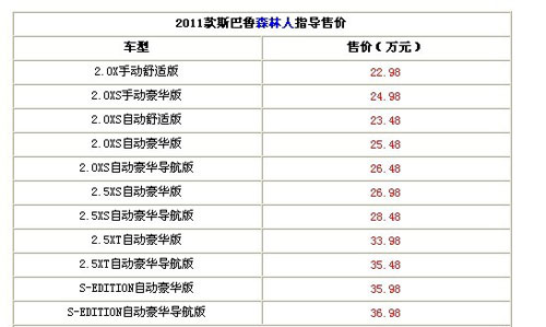 中新網(wǎng)12月20日電 今日,斯巴魯在廣州車展上正式推出了2011款森林人,此次上市新車共有11款車型,價格區(qū)間為22.98萬元-36.98萬元。斯巴魯在本次車展上展出了其中的Forester森林人2.5XS自動豪華版和Forester森林人S-EDITION自動豪華版。