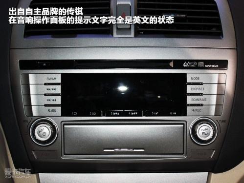 在這里我們不能不說(shuō)的一點(diǎn)是,自主品牌音響操作界面居然全部是英文顯示。雖然我們不拒絕向老外學(xué)習(xí)他們的經(jīng)驗(yàn),但是作為國(guó)內(nèi)自主的車型難道還要入老外的鄉(xiāng)隨老外的俗嗎?