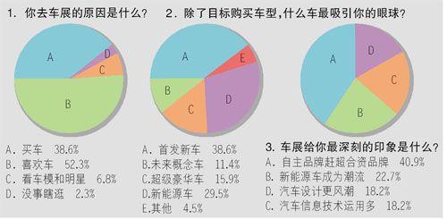 對廣州車展你感興趣嗎?車展上什么車最吸引你的眼球?本屆車展給你最深刻的印象是什么?上周,本報聯(lián)合新浪汽車進行了調(diào)查,結(jié)果顯示,大部分的讀者對汽車有著濃厚的興趣,而且對新車以及新能源車的關(guān)注度遠(yuǎn)遠(yuǎn)超過了明星車模。