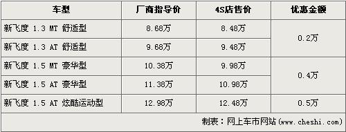 新飛度是廣州本田去年7月份上市的車型,其是廣州本田經(jīng)濟型轎車的主力軍,外形比起老款飛度更加前衛(wèi)更加時尚,創(chuàng)新的動感另類駕駛艙更是一大亮點。近日據(jù)網(wǎng)上車市網(wǎng)站價格監(jiān)測系統(tǒng)顯示,新飛度全系最高優(yōu)惠金額為5000元,具體詳情請看下表: