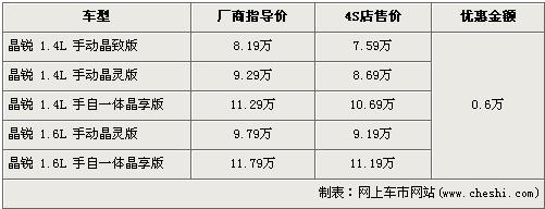 據(jù)記者走訪北京多家斯柯達(dá)經(jīng)銷店獲知,近期購買斯柯達(dá)晶銳的消費(fèi)者可以得到全系6000元的優(yōu)惠。經(jīng)優(yōu)惠后,入門級的斯柯達(dá)晶銳1.4L手動晶致版售價從8.19萬元下降到了7.59萬元。頂配的1.6L手自一體晶享版售價從11.79萬元降到了11.19萬元。