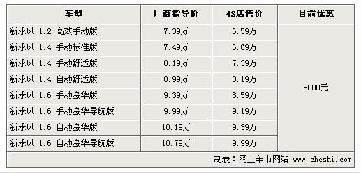 據(jù)4S店銷售人員介紹:目前新款樂風(fēng)最高優(yōu)惠達8000元,整體而言現(xiàn)車較充足,但1.2升車型需要預(yù)訂,預(yù)定周期為1-3周。由于1.2升車型動力較弱且性價比并不高,所以銷量較少自然車源也不充足。1.4升排量車型是樂風(fēng)銷量主力,車型貨源充足,有興趣的朋友可以到店洽談。
