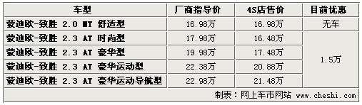 據(jù)4S店銷售人員介紹:目前蒙迪歐致勝全系優(yōu)惠1.5萬元,現(xiàn)車較充足,但顏色不是非常齊全,只有銀色、灰色、黑色現(xiàn)車。如預(yù)定需等10天至20天左右,現(xiàn)車到店時間較短。2.0車型目前不接受預(yù)訂,廠家不給予排產(chǎn),2.3升至尊版車型目前也已停產(chǎn),請用戶根據(jù)自己的需求選擇車輛。