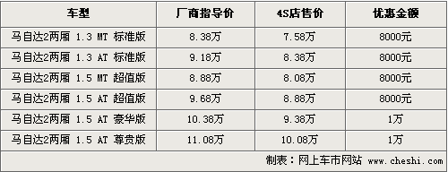 筆者從長安馬自達(dá)經(jīng)銷商處了解到,目前兩廂車最高優(yōu)惠可到1萬元,其中標(biāo)準(zhǔn)版和超值版能優(yōu)惠8000元,這兩類型車型相比銷量較多,尊貴版和豪華版優(yōu)惠1萬元,只有黑色和灰色現(xiàn)車,受大眾喜歡的紅色等車型需要等待10天時(shí)間才能提車,訂金為1000元。