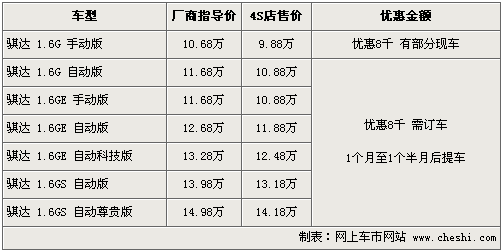 東風(fēng)日產(chǎn)的兩款主力經(jīng)濟(jì)型轎車(chē)騏達(dá)、頤達(dá)于05年上市,并于07底、08年初兩款車(chē)完成了小改款及升級(jí)方案,憑借其寬敞的車(chē)內(nèi)空間以及出色的動(dòng)力性能博得了不少消費(fèi)者的喜愛(ài)。根據(jù)網(wǎng)上車(chē)市價(jià)格監(jiān)測(cè)系統(tǒng)顯示,近日騏達(dá)、頤達(dá)兩款車(chē)全系車(chē)型現(xiàn)金優(yōu)惠8千元,最低售價(jià)9.88萬(wàn)元,具體詳情請(qǐng)看下表: