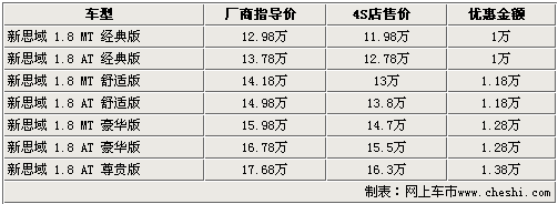 現(xiàn)售的思域是今年初推出的改款車型,在經(jīng)過19項(xiàng)之多的技術(shù)改進(jìn)后,新思域整體的性價(jià)比有了一定程度提升。新裝備的F1賽車的換檔撥片以及全新三幅多功能方向盤更突出了新思域的運(yùn)動感,讓駕駛者更能體會駕馭的樂趣。目前根據(jù)網(wǎng)上車市價(jià)格監(jiān)測系統(tǒng)顯示,新思域的優(yōu)惠較大,目前購買新思域的消費(fèi)者最高可享受1.39萬的現(xiàn)金優(yōu)惠。具體行情如下:
