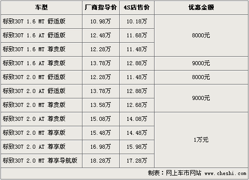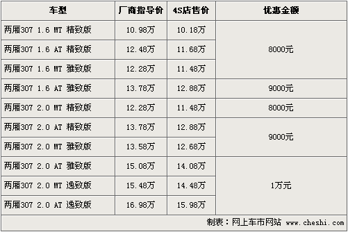 東風(fēng)標(biāo)致旗下的“大嘴”307,自在08年上市至今得到了消費(fèi)者的一直認(rèn)可和喜愛。根據(jù)網(wǎng)上車市價(jià)格監(jiān)測系統(tǒng)顯示,東風(fēng)標(biāo)致將于9月17日正式推出新款標(biāo)致307,同時(shí)老款優(yōu)惠幅度進(jìn)一步加大。具體車型以及價(jià)格如下: