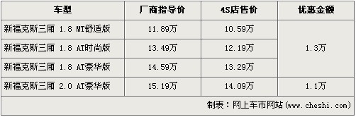 ?怂箲{借出色的外觀設(shè)計(jì)及極佳的操控性贏得了市場(chǎng)的認(rèn)可,在銷量方面一直保持迅猛的勢(shì)頭。尤其新款?怂沟纳鲜,一改內(nèi)飾略顯粗糙的詬病,使得?怂垢呌谕昝。福克斯采用了沃爾沃S40底盤,將操控進(jìn)行到底,這一優(yōu)勢(shì)博得全世界的掌聲,名副其實(shí)成為了這個(gè)級(jí)別的標(biāo)桿車型。據(jù)網(wǎng)上車市價(jià)格系統(tǒng)檢測(cè)顯示,目前三廂?怂谷底罡邇(yōu)惠1.3萬元,具體車型價(jià)格請(qǐng)看下表: