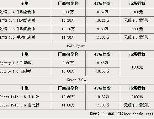 polo是上海大眾主打小型車市場的主力車型,目前在國內(nèi)市場售賣的車型為第四代小改款車型,而隨著Cross版以及Sporty車型的加入,Polo也增大了與同級車的競爭力。近日據(jù)了解,polo目前全系現(xiàn)車比較緊張,現(xiàn)車最高優(yōu)惠達(dá)5600元,具體詳情請看下表: