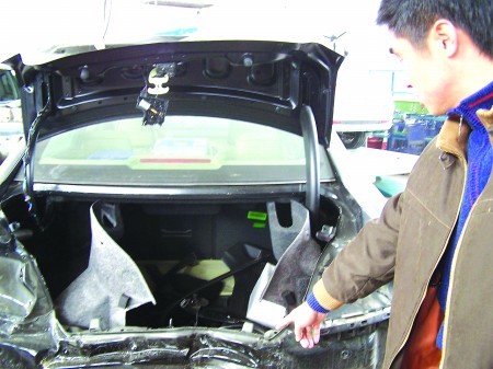 當著記者面,叢經(jīng)理解釋說,“ 后圍”是中空鋼結(jié)構(gòu),和車體焊接在一起,外面是保險杠,不是易損件,因此公司并無備件。關于于進英的那輛待修車,其他配件都有,就是沒有這個“后圍”。2日上午10時,上海方面就此剛與他溝通過,他也沒得到任何承諾。