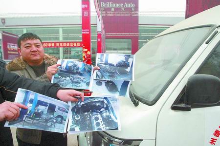 上午10時,記者趕到豐慶路與北環(huán)路交叉口,看到一輛上牌的金杯海獅商務(wù)車橫在華晨汽車銷售店門前,車旁的幾名男子出示了一沓發(fā)動機被拆開維修時的照片,該車里程表數(shù)據(jù)為12692公里。