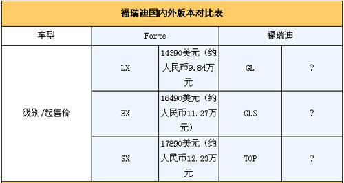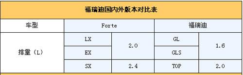 總結(jié):從上面的對(duì)比我們發(fā)現(xiàn),F(xiàn)orte國內(nèi)外兩種版本之間的差異還是很大的,其中動(dòng)力單元差別最顯著,這主要是由國情和消費(fèi)能力所決定的。目前國內(nèi)市場(chǎng)上小排量車型大行其道,尤其是1.6L車型更是炙手可熱,福瑞迪今后的重點(diǎn)也將會(huì)落在1.6L車型上,至于2.0L車型更多的將擔(dān)負(fù)起拉升品牌形象的重任。具體價(jià)格車型配置等信息,我們將在上市第一時(shí)間為你詳細(xì)報(bào)道,敬請(qǐng)大家關(guān)注!