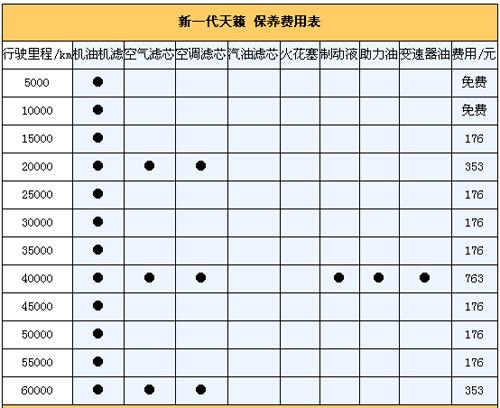 5.保養(yǎng)費(fèi)。我們向東風(fēng)日產(chǎn)4S店售后服務(wù)人員咨詢過,新一代天籟保養(yǎng)周期為5000km,首保在5000km時(shí)進(jìn)行(免費(fèi)),以后每5000km做一次保養(yǎng),以一年2萬(wàn)公里來計(jì)算其一年保養(yǎng)費(fèi)平均用在900元。